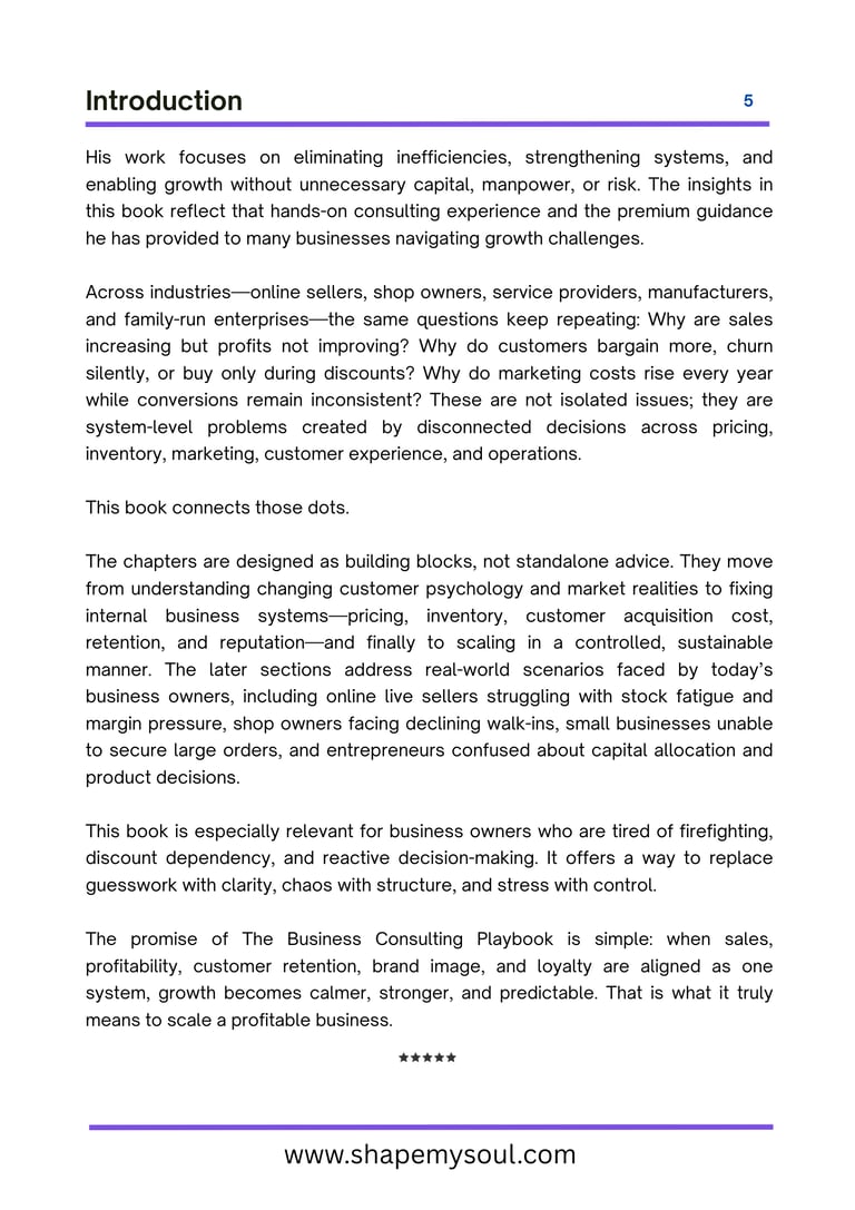 Rather than offering theory or motivation, the playbook provides practical frameworks and actionable strategies covering areas like market analysis, pricing, marketing systems, operational efficiency, and customer retention. It helps business owners replace guesswork with clarity and build structured systems that support sustainable growth, stronger profitability, and long-term business stability.